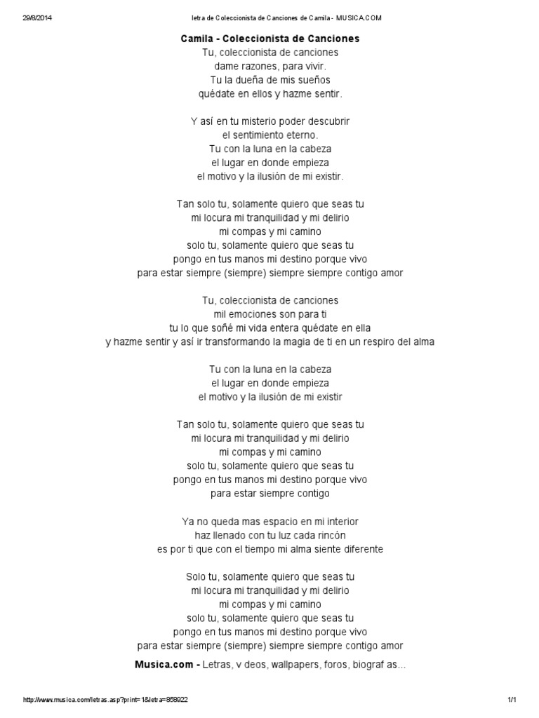 Letra De Coleccionista De Canciones De Camila Musica Pdf