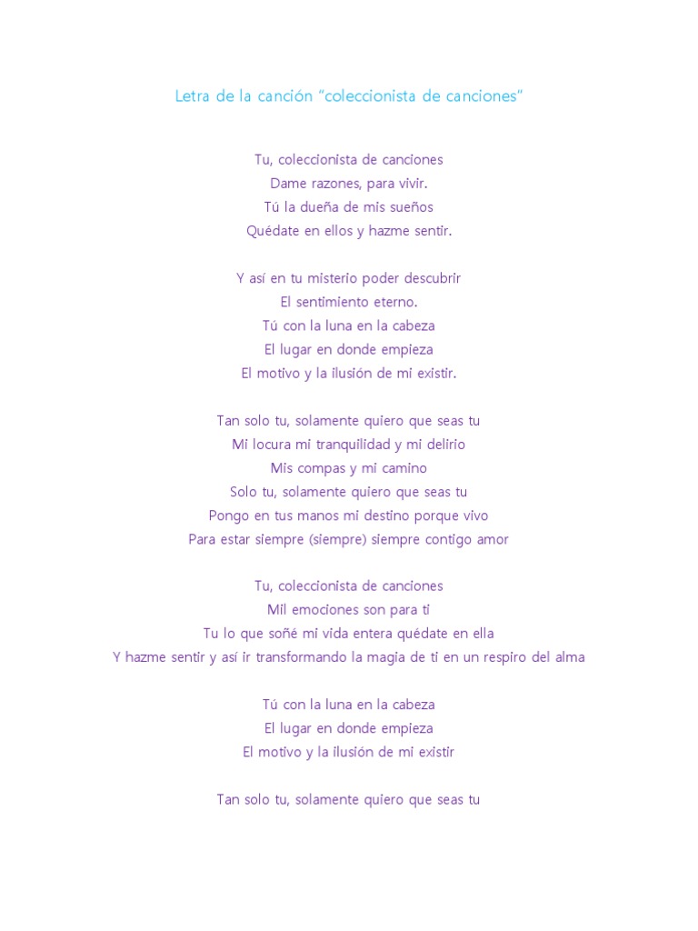 Letra De La Cancion Coleccionista De Canciones