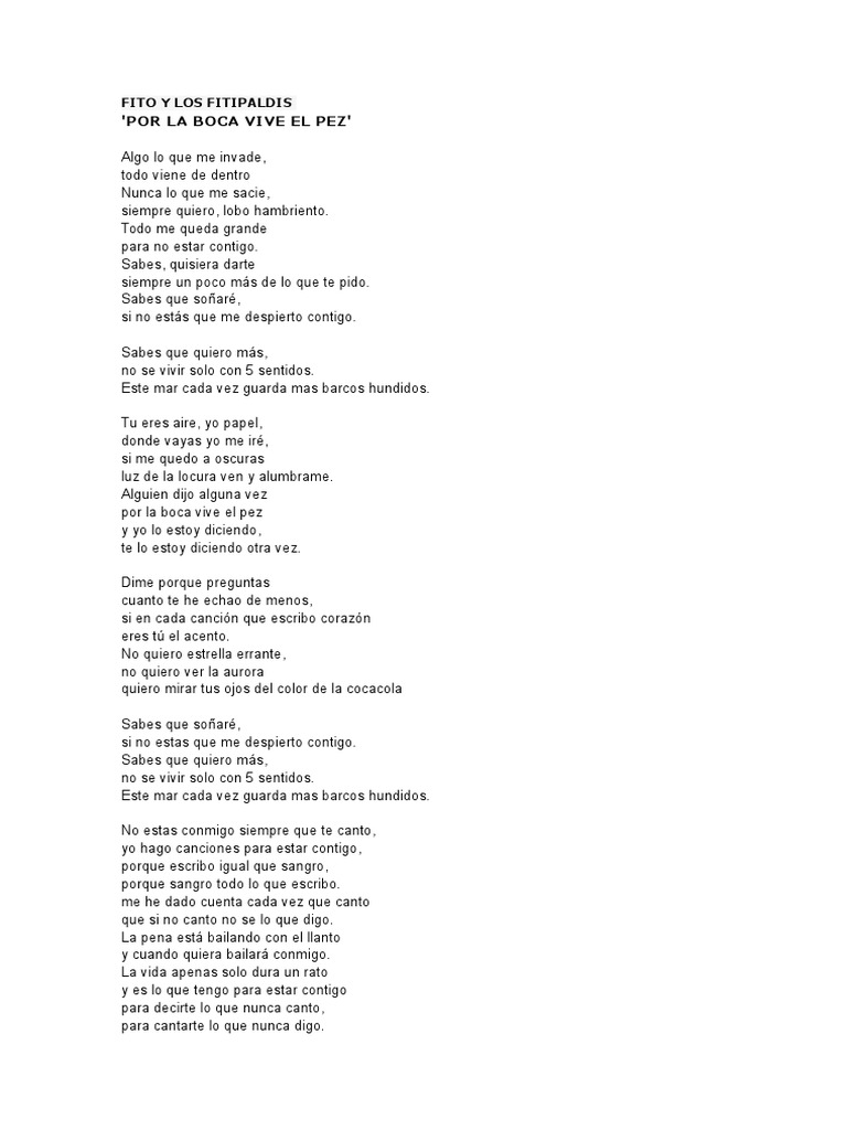 Letra De La Cancion Por La Boca Vive El Pez Fito Fitipaldis