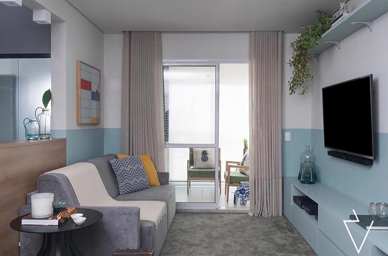 Paredes com Pintura geométrica na parede e puxadores azuis | INÁ Arquitetura 220242 - Viva Decora